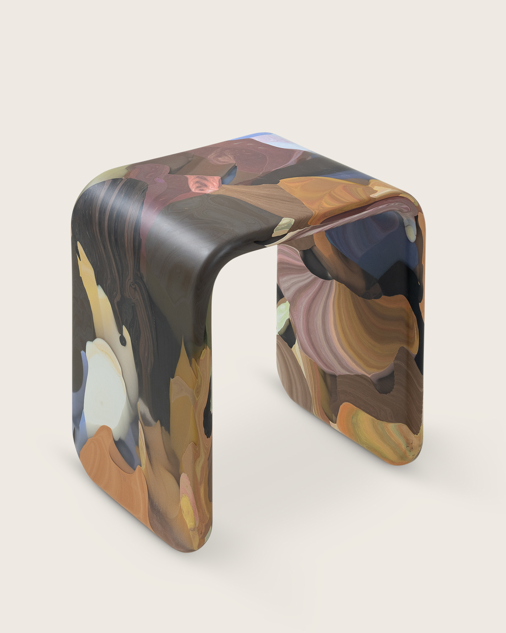 The Staple quietly celebrates the qualities inherent to recycled plastic. Namely, the material’s ability to bend without sacrificing structural integrity. Multi-functional as a stool or side table, the understated U-shape places expressive patterning at the fore. Free from joins or reinforcements, the Staple embraces plastic’s ability to stand alone as a mono-material. |